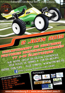 Pour la 4ème manche du Championat de Bretagne Team Car Rc organise cette course le 16 juin 2019.Inscriptions sur MyRCM, voir lien ci joint .. https://www.myrcm.ch/myrcm/main…12€ pour une catégorie 17€ pour les deux.Possibilité de régler par chèque au nom de team car Rc , à envoyer à notre secrétaire Sophie Guillaume…